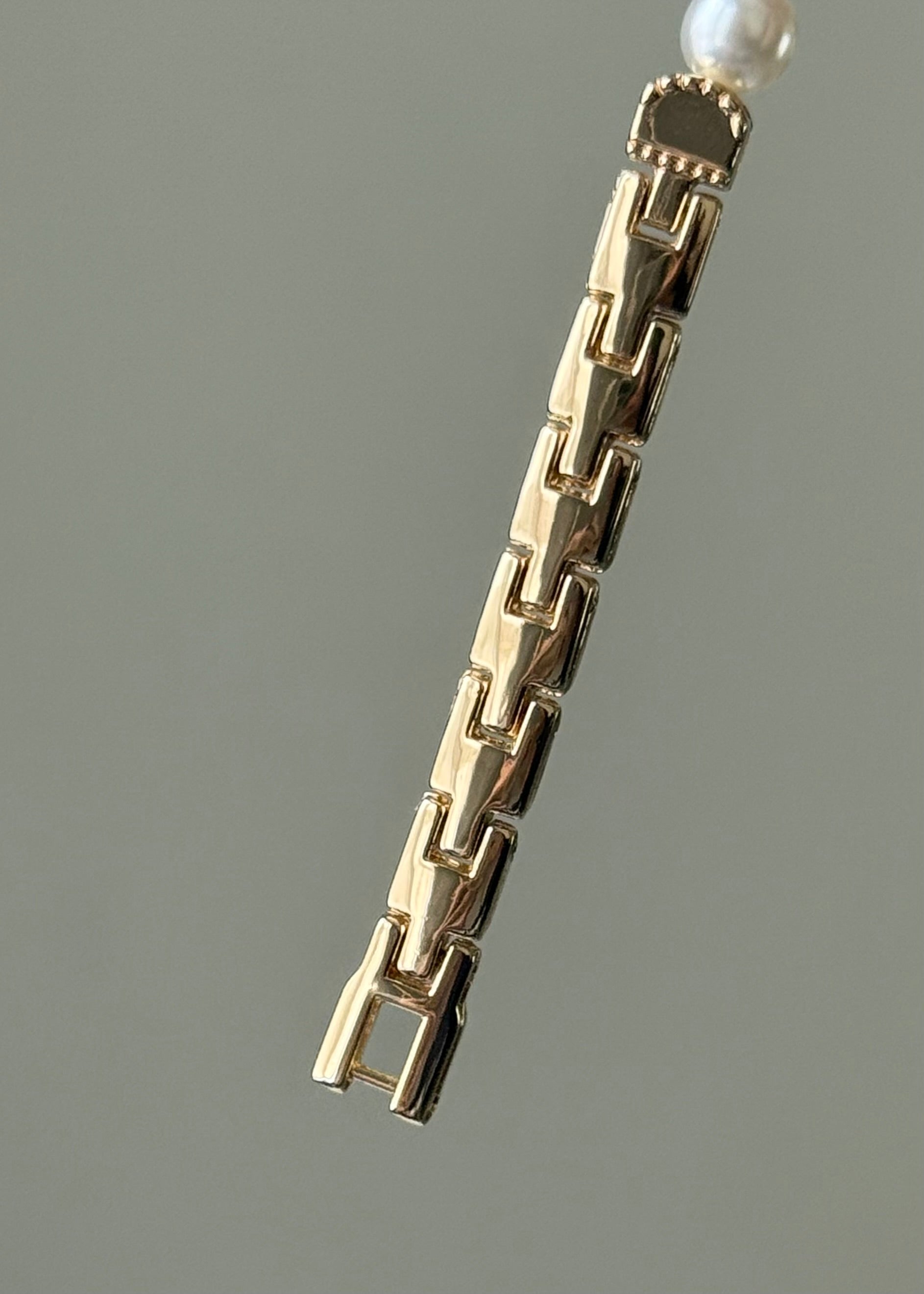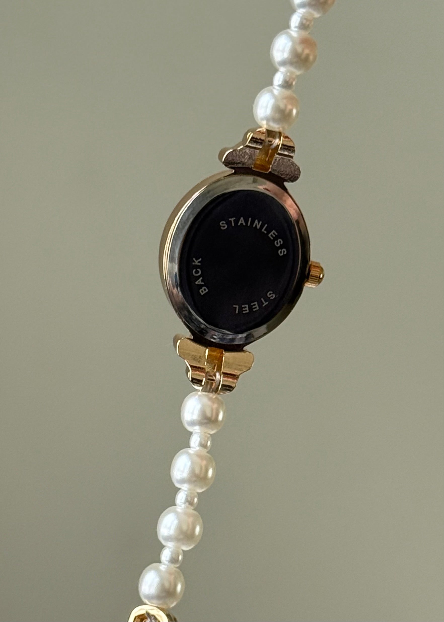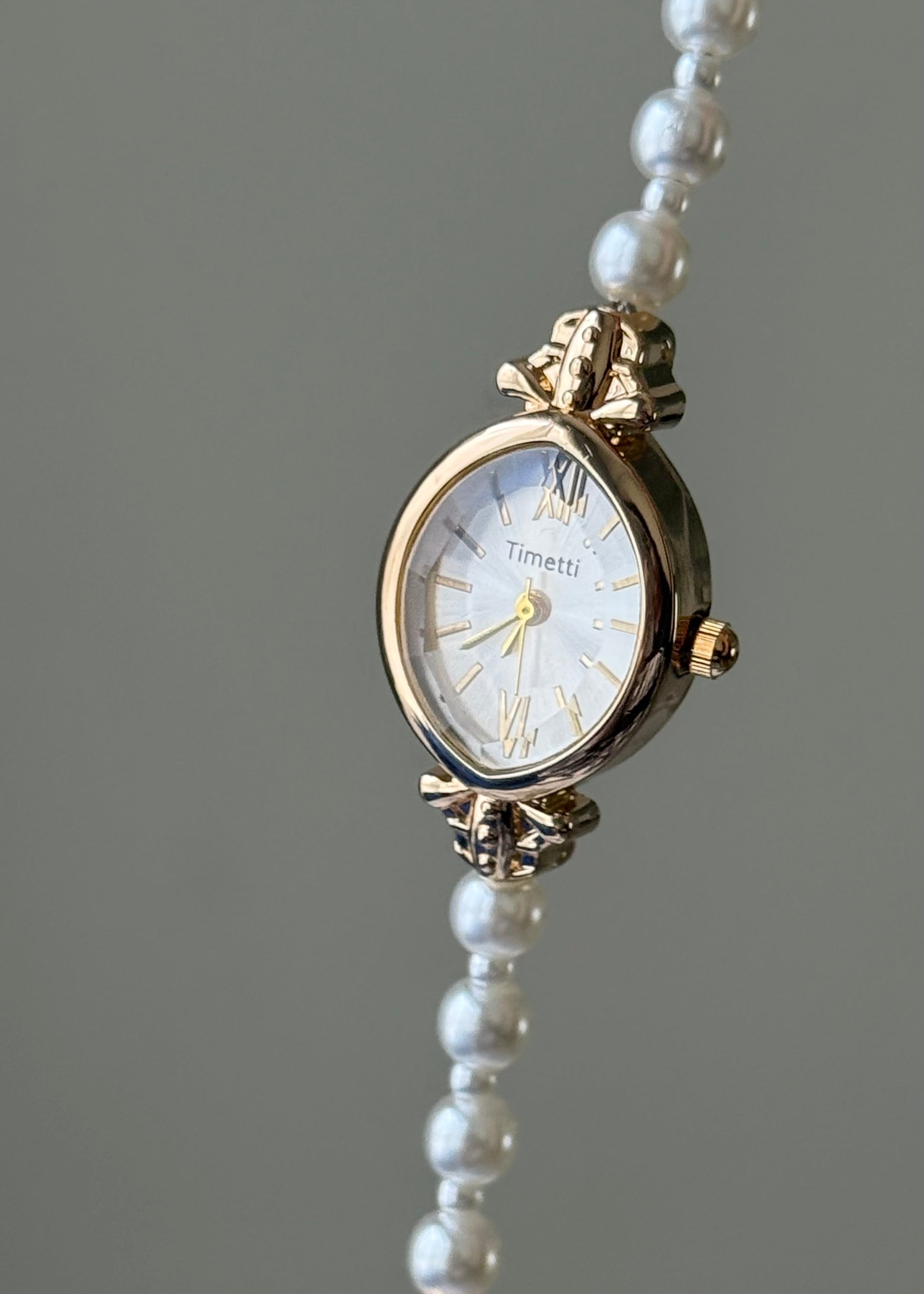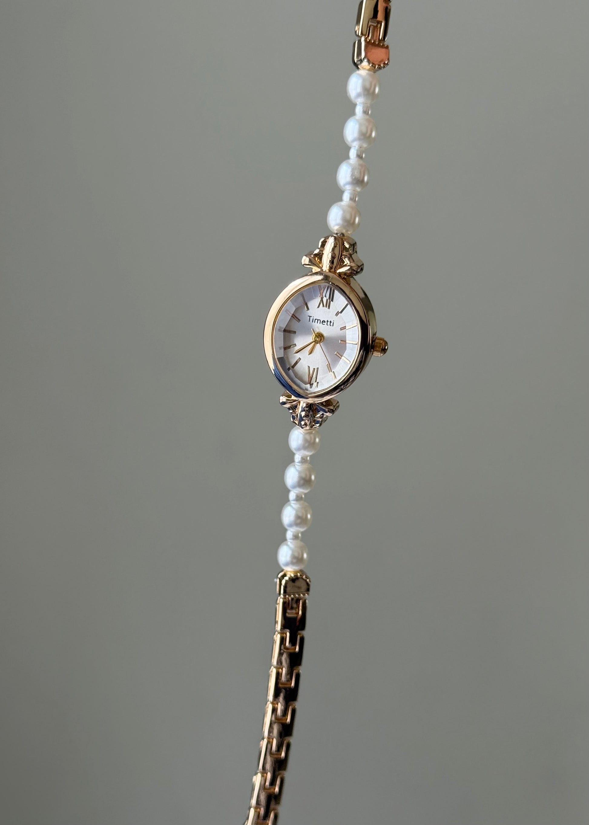 The Maris watch blends elegance and charm with its delicate gold finish, pearl-accented strap, and uniquely soft diamond-shaped dial—perfect for adding a refined touch to any outfit.